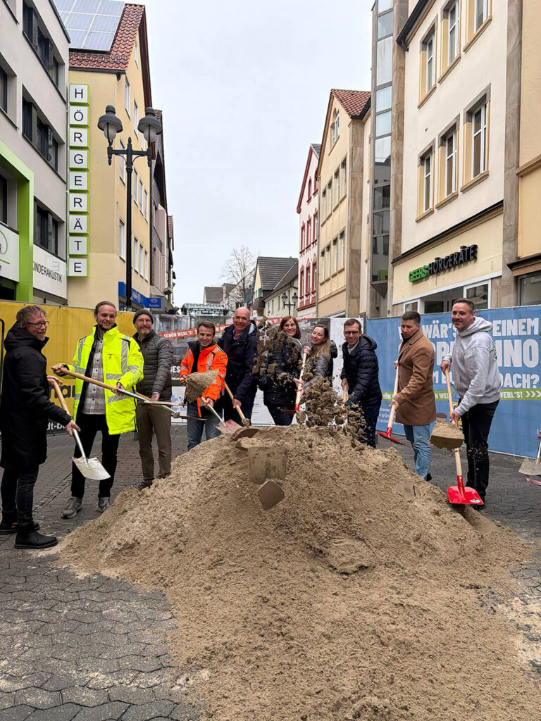 Der Startschuss ist gefallen: Mit dem offiziellen 1. Spatenstich hat die Umgestaltung der Fußgängerzone begonnen.
